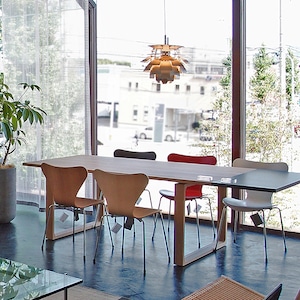 1958年、ポール・ヘニングセンがコペンハーゲンのレストラン「ランゲリニエ・パヴィリオン」のために設計した「PHアーティチョーク」。どの角度から見ても完全にグレア・フリーの光を作りだす独特のフォルム。正確に配置された72枚の羽が、アーティチョークの名前を象徴しています。インテリアトレンドに左右されず、どんな空間にもなじみ、時代を越えて愛されるのはアイコンデザインの証です。