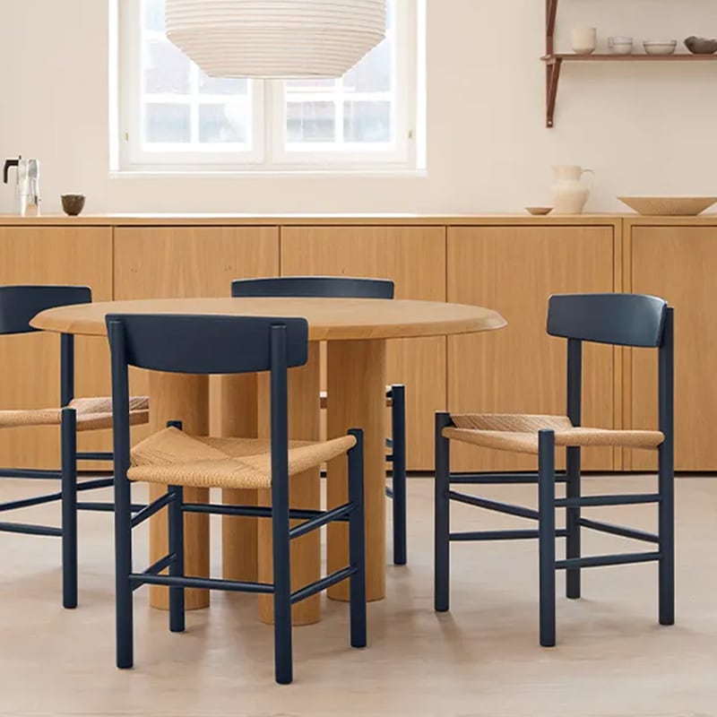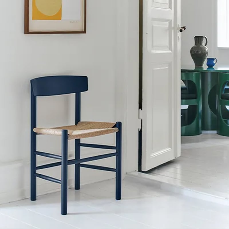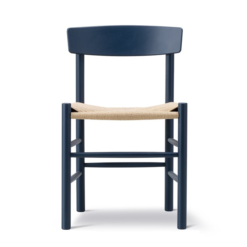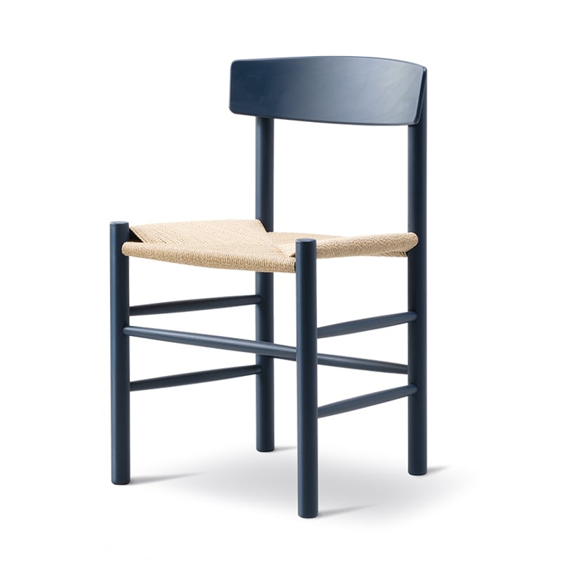 デンマーク家具デザインの原点といえる「J39モーエンセンチェア」。モーエンセンがFDB(生協)の家具デザイナーとして活躍していた際に、「適正な価格で強度のあるチェア」というミッションで作られたシェーカースタイルのダイニングチェア。彼の目指した「簡素で誠実なデザイン」が良く表現され、モーエンセンの代表作といえるチェアとなりました。洗練されたデザインと、手編みの座面、背もたれの快適性より75年以上絶えることなく生産され続け、世界で高い評価を得ています。建築大学やレストラン、ロイヤルコペンハーゲン工場の絵付の作業時のチェアとして採用されていたことから、その強度と長時間掛けても疲れない椅子として定評があります。