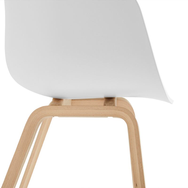 頑丈なシートは、アームレストと一体型の美しい曲線をもつ背もたれになっており、柔らかな印象と一体感のあるシルエット、非常に快適な座り心地を生み出しています。また、4本脚の木製ベースには、時代にとらわれないクラシックな表情があります。木目や色の濃淡は1点ずつ異なります。天然素材ならではの質感をお楽しみください。毎日使う椅子だからこそ、優れた安定性と長い間お使いいただける品質にもこだわっています。シートは豊富なカラーを揃えているため、お好きなカラーや空間の雰囲気にあわせてお選びください。