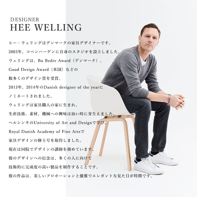 ヒー・ウェリングはデンマークの家具デザイナーです。2003年、コペンハーゲンに自身のスタジオを設立しました。ウェリングは、Bo Bedre Award(デンマーク)、Good Design Award(米国)などの数多くのデザイン賞を受賞。2013年、2014年のDanish designer of the yearにノミネートされました。ウェリングは家具職人の家に生まれ、生産技術、素材、機械への興味は幼い時に芽生えました。ヘルシンキのUniversity of Art and Designで学び、Royal Danish Academy of Fine Artsで家具デザインの修士号を取得しました。現在は同院でデザインの講師を務めています。彼のデザインへの信念は、多くの人に向けて技術的に完成度の高い製品を制作することです。彼の作品は、美しいプロポーションと優雅でエレガントな見た目が特徴です。