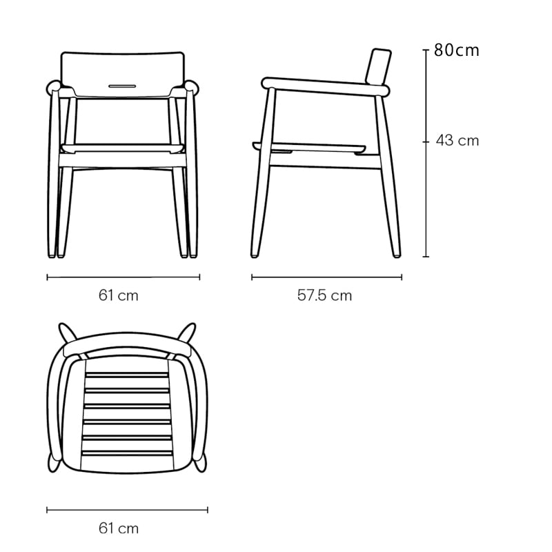 EOOSは、2015年以来、カール・ハンセン&サンのコレクションのコンテンポラリーな側面を代表する作品を発表してきました。EOOSの3人のデザイナーは、テーブル、椅子、ソファで構成される既存のEmbraceシリーズをそのまま継承・拡充するEmbraceアウトドアシリーズを発表しました。この上ない快適さとくつろぎがアウトドアでも実現します。「完全さと不完全さ」を探求し続けるEOOSは、EOO5 Embraceアームチェアと同様のデザインが反映されたE008 Embraceアウトドアチェアを生み出しました。EOOSの3人は、屋内での食事の時間を再現できるような、新しいタイプのアウトドア家具づくりを目指してきました。柔らかな布張りのクッションがFSC?認証チーク材のフレームを包み込み、すっきりとしていながら緻密なデザインの木材とファブリックが、エレガントなコントラストを演出します。取り外し可能なクッションは丈夫で耐候性に優れた生地でできており、使い心地の良さと美しさを併せ持っています。未処理のチーク材が持つ風合いを一層際立たせ、アームの接合部やシート下面のトラス組みには高度な職人技が見て取れます。E008 Embraceアウトドアダイニングチェアは、積み重ねて収納することもでき、E022 Embraceダイニングテーブルとマッチします。