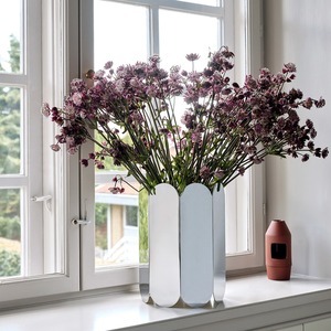 アーチ型のエレメントをつなげたエレガントなデザインが特徴の花瓶です。表情豊かな色のフラワーベースは、ダイニングやラウンジなど様々な場所でお使いただけます。