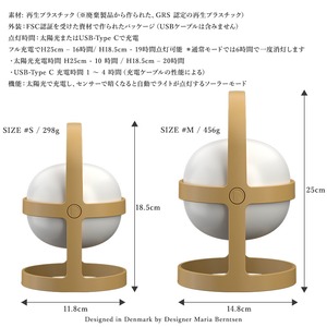 ・太陽光充電時間 H25cm - 10 時間 / H18.5cm - 20時間