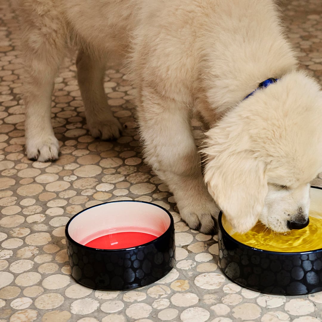 機能的でカラフルなアクセサリーを取り揃えています。滑らないよう重さのある頑丈なせっ器を使用したこのボウルは、遊び心のある3色のデザインが特徴です。複数のデザインをご用意しており、犬種やサイズにかかわらず、水やエサを入れてお使いいただけます。