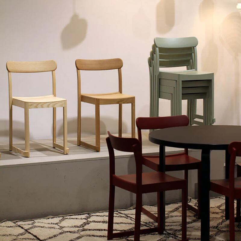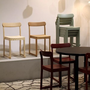 「アトリエ チェア」は、ストックホルムの国立美術館に新設されたレストランのためにデザインされました。その名は、レストランのダイニングホールのコンセプトが、アーティストのアトリエであったことに由来しています。コンパクトで軽量、スタッキング可能で快適な座り心地を兼ね備えたこの椅子は、国立美術館による北欧デザインの「今」を施設内に取り入れ、紹介するプログラムの一環として、ストックホルムを拠点とするデザインスタジオTAFによりデザインされました。アトリエチェアは、住まいから働く環境、公共空間まで、あらゆる環境において変わることのない普遍的な存在です。