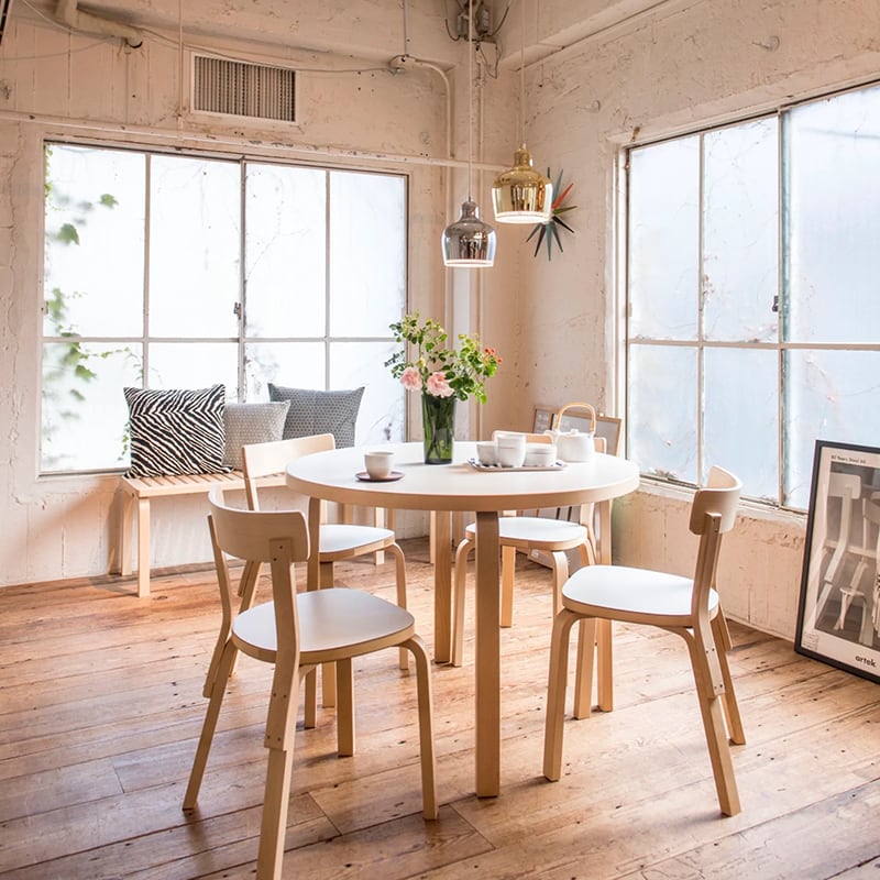 アルヴァ・アアルトのデザインによるテーブルは、豊富なサイズや仕様を誇り、そのどれもが空間に馴染むさりげなくも優しいデザインです。ダイニングテーブルとして、ワークデスクとして、子ども部屋のテーブルとして、暮らしの数だけ無限の使い方が存在します。「L - レッグ」を応用することによる高い汎用性と、自然素材であるバーチ材の美しさを兼ね備えたアルヴァ・アアルトのテーブルは、国や文化、環境を選ばず、さらに時の経過とともに美しく経年変化します。アルテックのその他の製品同様に、フィンランドの工場で生産されているアアルトテーブルは、熟練した職人の手仕事で高い品質を保ち、効率良く機械化することにより適正な価格で大量生産を実現、世界中の暮らしに平等に届けられます。